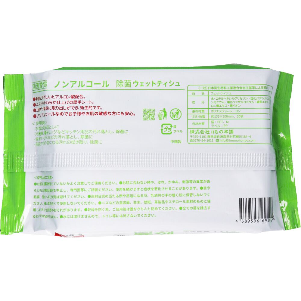 清潔習慣 除菌ウェットティッシュ ノンアルコールタイプ 50枚入