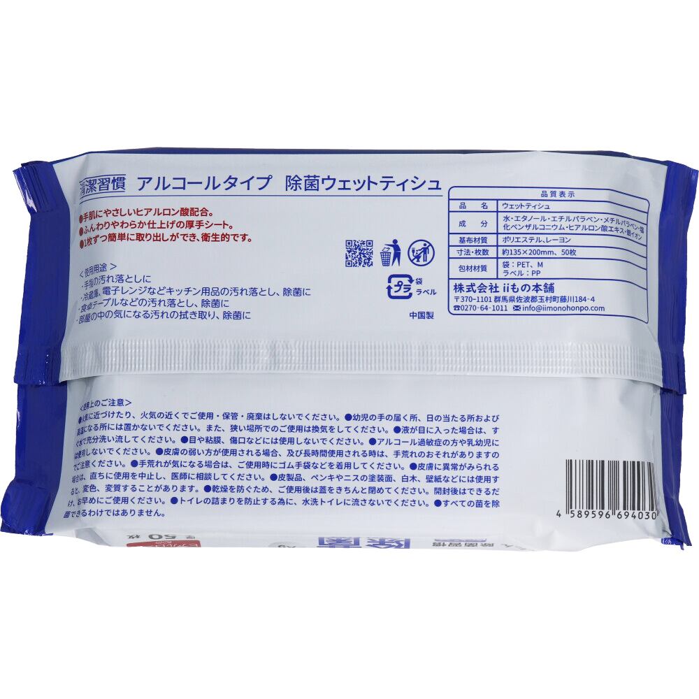 清潔習慣 除菌ウェットティッシュ アルコールタイプ 50枚入