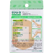「やわらか素材の高密度ウレタン不織布」「キズぐちにやさしいパッド」「水に強い粘着剤」採用、やさしい素肌タイプの救急絆創膏です。