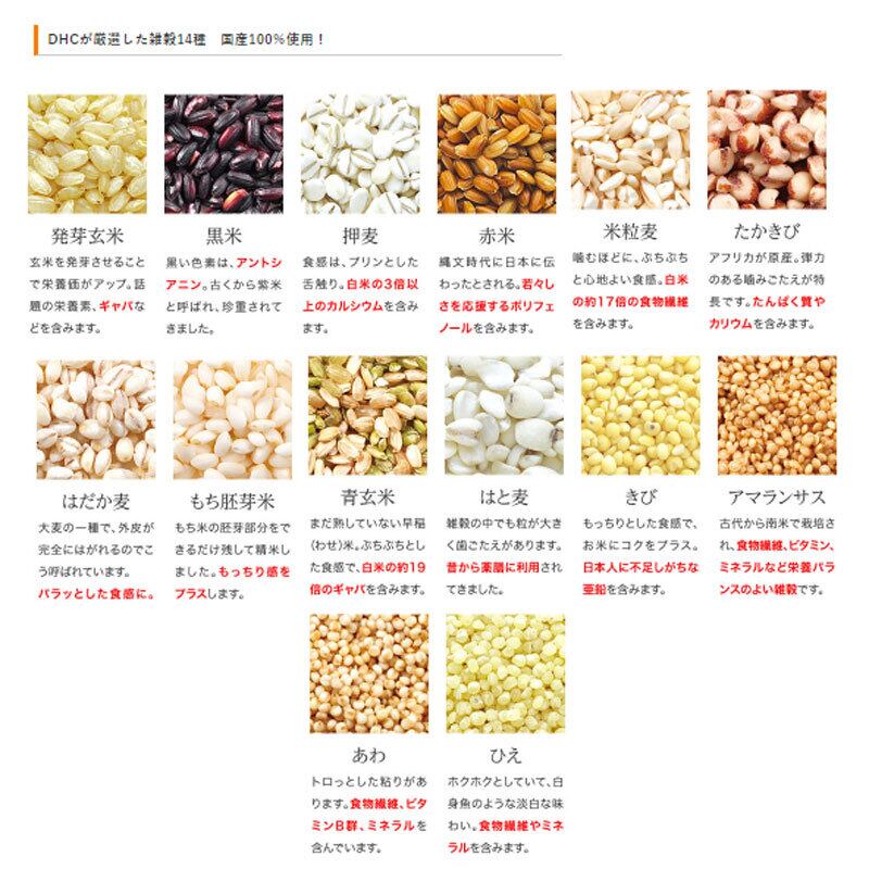 ●14種類の雑穀はすべて国産を使用し、DHC独自の割合でブレンド。