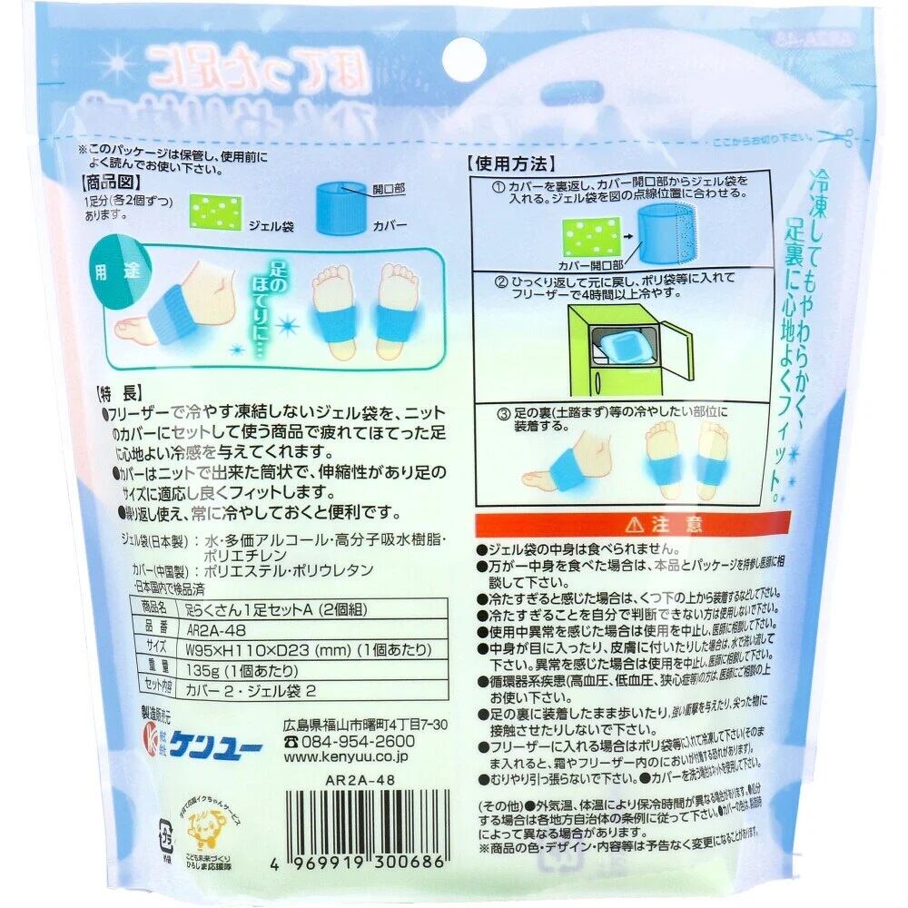 (暑さ対策に!)足らくさん 足裏冷却ジェル袋 フリーサイズ 1足セット(2個組)