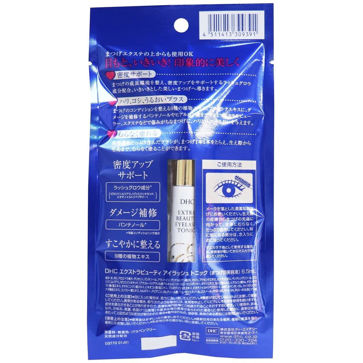 ●『DHCアイラッシュトニック』をベースに、多彩な美容成分を追加配合。まつ毛へのサポート効果がよりパワーアップしたまつ毛専用美容液です。